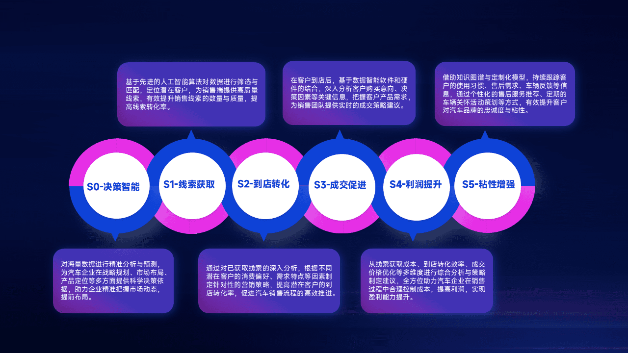 通过拓宽潜在客户来源、、优化线索分配并提高到店转化率,,以增强销售效率。。。同时,,,,利用线索数据不断优化分析模型,,,有效提升转化率,,,,扩大营销影响力。。